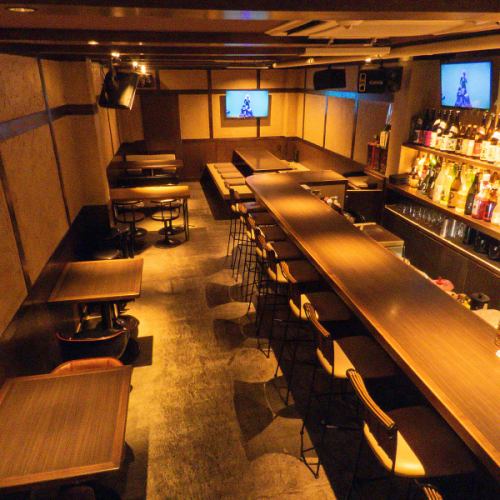 千歳モール街からすぐ!2次会にもぴったりな好立地!お一人様やデートでも気兼ねなくご利用いただける大人のムード漂うL字型のバーカウンター。目の前に並ぶライティングされたお酒のボトルがお洒落な雰囲気を演出いたします。ご友人同士の気軽な一杯などにも。スタッフとの会話もカウンター席ならでは◎
